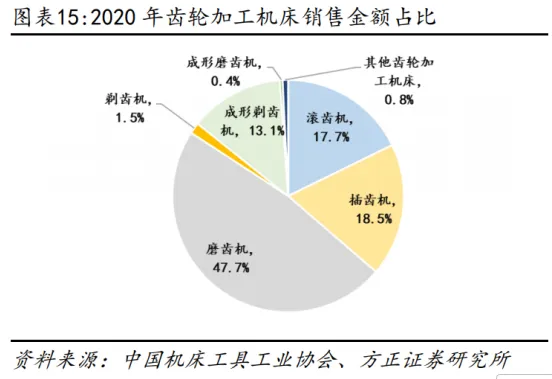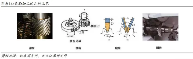 3) 齿轮加工机床:高精度、专业性强的加工机床,滚齿、插齿、磨齿机是主力机型