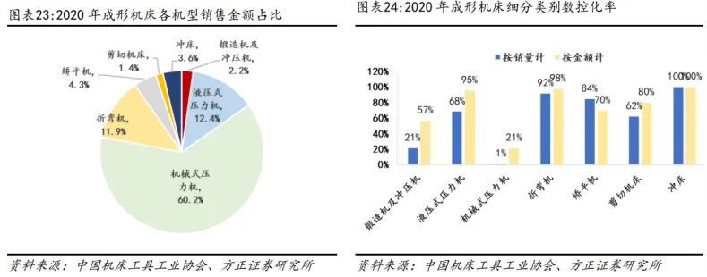 (2) 金属成形机床:数控化率相对较低,压力机、折弯机、矫平机是主要机型