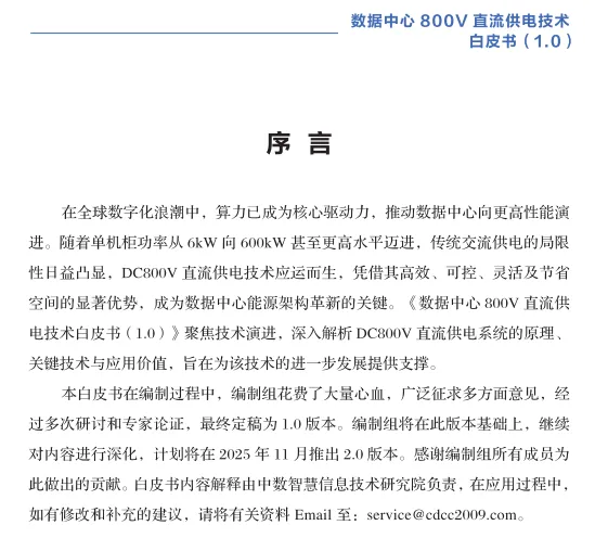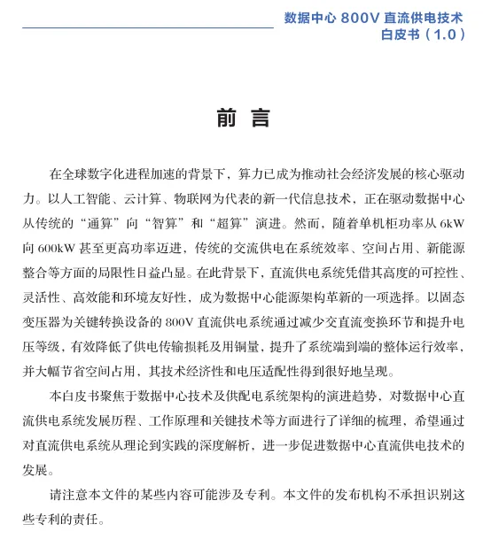这份由中数智慧信息技术研究院等机构于2025年8月发布的《数据中心800V直流供电技术白皮书(1.0)》,系统性地阐述了应对AI高算力时代数据中心供电挑战的关键技术路径。以下是对其核心内容与重点的分析总结: