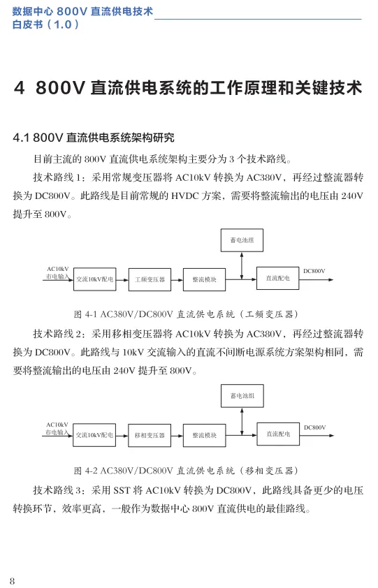 报告梳理了三条实现800V直流供电的路径,并明确了推荐方向: