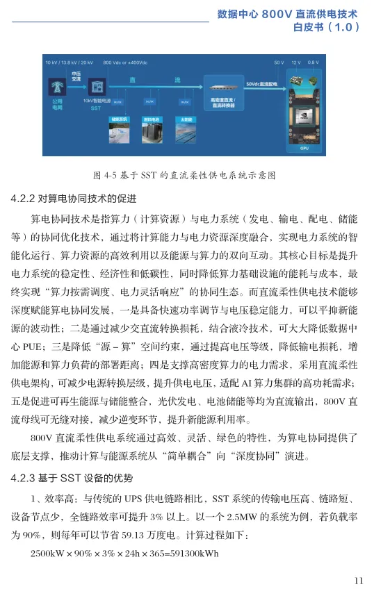 3.生态构建:800V直流供电不仅是供电技术升级,更是支撑 “算电协同” 和 “源网荷储一体化” 的底层基础,能高效融合新能源,降低PUE。