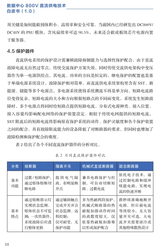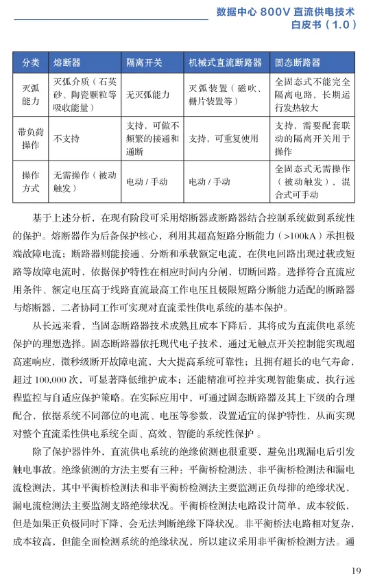 保护系统:直流电无自然过零点,保护复杂。报告分析了熔断器、断路器、固态断路器的优劣,指出当前需协同配合,未来固态断路器是理想方向。