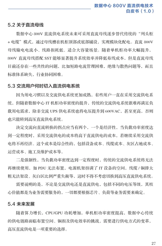 报告构建了围绕800V直流供电的完整技术体系,并客观指出了挑战: