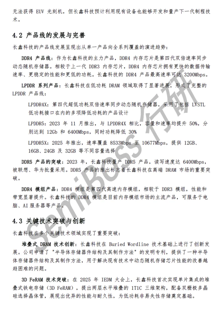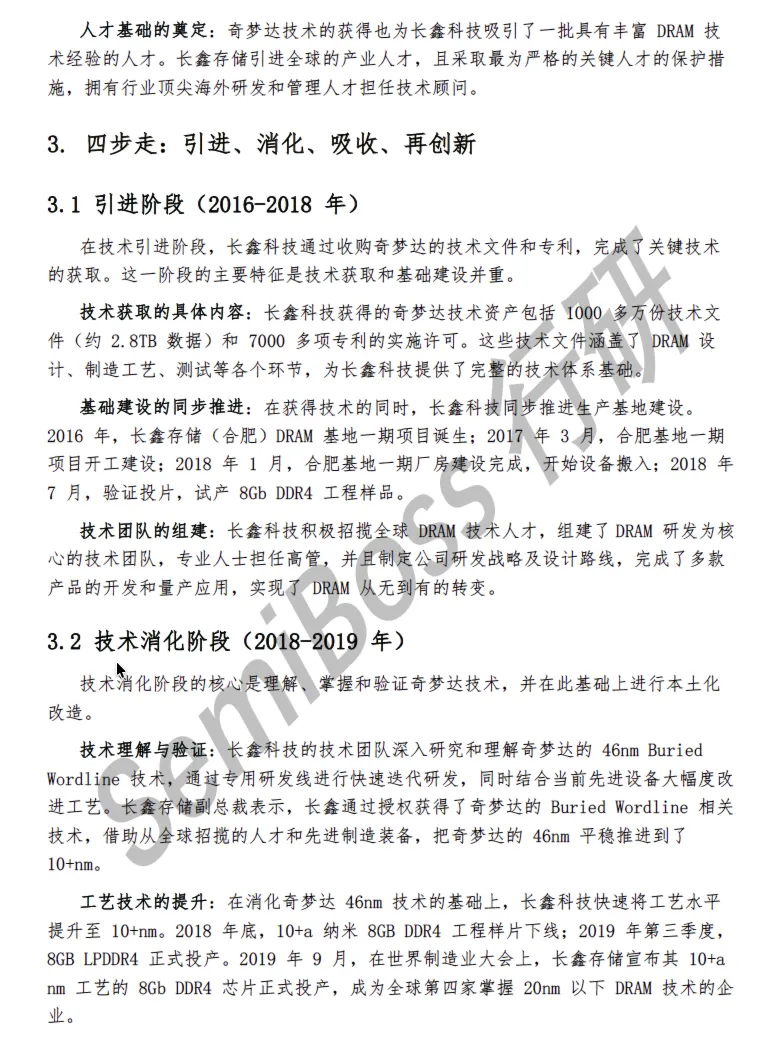 消化吸收的高效性:长鑫科技在获得技术后,通过专业的技术团队和先进的研发设施,快速实现了技术的消化吸收。从 2016 年成立到 2019 年量产 10+a nm DDR4 产品仅用 3 年时间,展现了高效的技术转化能力。