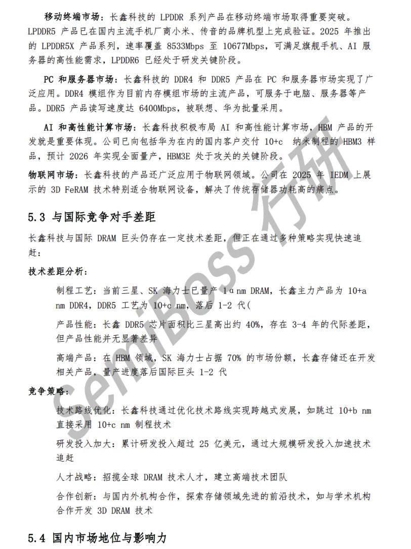 市场导向的明确性:长鑫科技始终坚持技术创新与市场需求相结合,通过产品性能提升和成本控制实现商业化成功。其产品在移动终端、PC、服务器、AI 等多个市场实现了规模化应用。