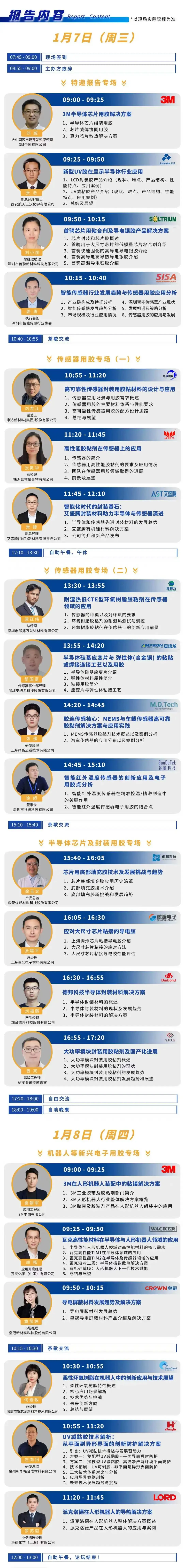 本次论坛将重点围绕半导体、传感器、机器人、低空经济等新兴高端电子用胶方向邀请报告,已确认邀请报告如下: