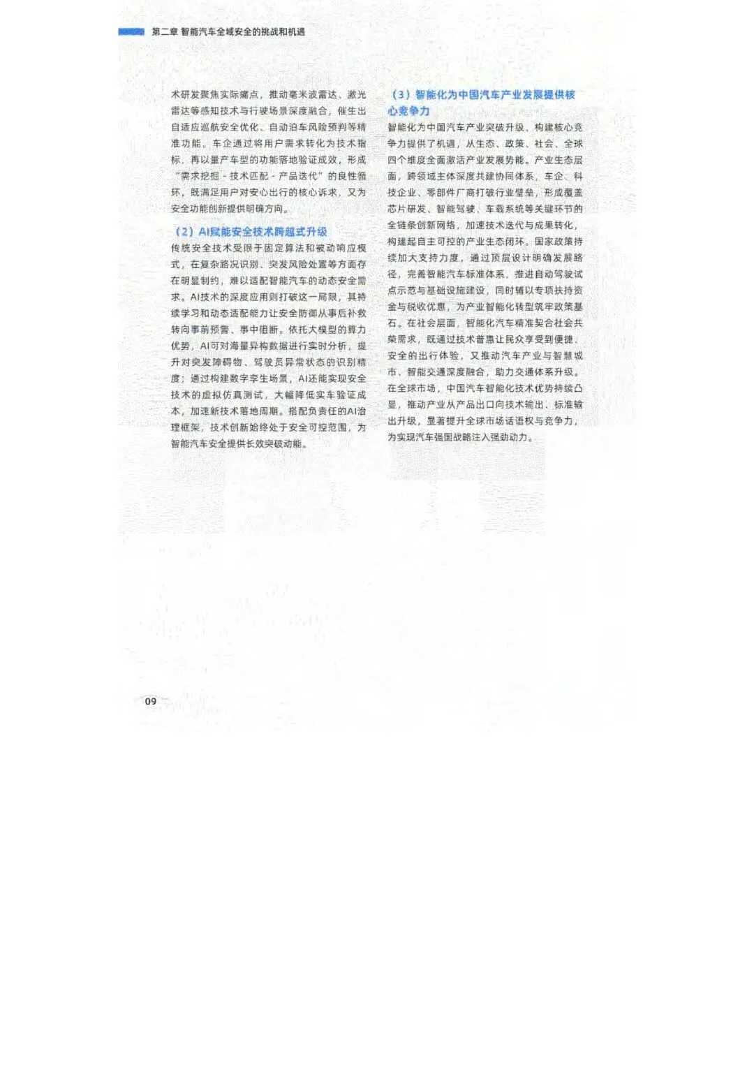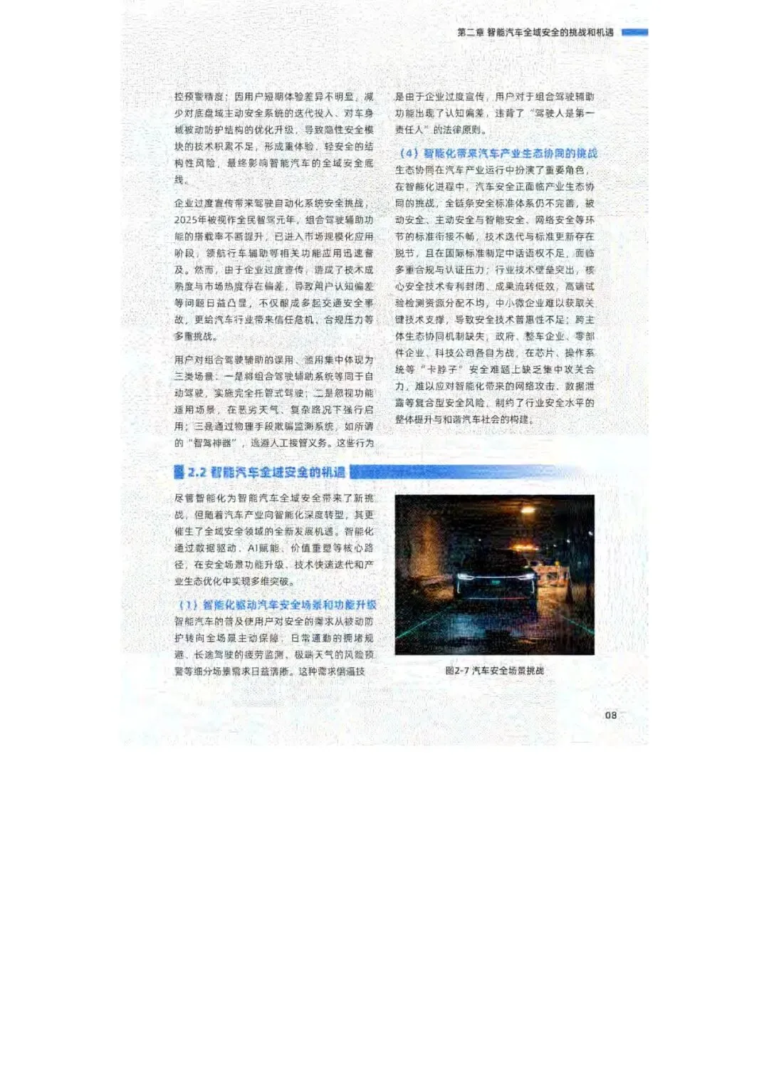 智能汽车面临场景功能多样化、技术短板与创新风险、产业导向失衡等挑战,但智能化也催生了安全场景功能升级、技术快速迭代和产业生态优化的机遇。AI技术赋能安全,从被动防护转向主动预判,实现从“铠甲”到“免疫系统”的跨越。网联安全和卫星安全作为全域互联的支柱与感知的空间补充,为智能汽车提供全方位安全保障。