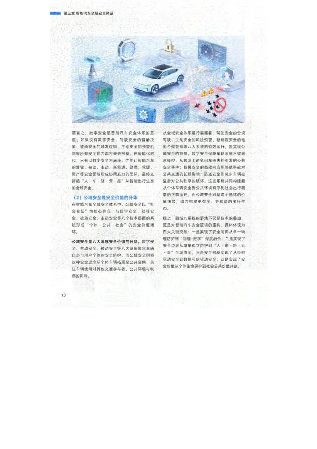 此外,报告强调公域安全作为全域安全的价值升华,要求企业从个体车辆防护升级为社会公共安全赋能,构建“环境协同 + 责任共担”的机制。未来,智能汽车全域安全将向生命安全域闭环升级、安全价值边界拓展、标准体系迭代完善等方向发展,助力中国汽车产业在全球市场实现价值超越与标准引领。