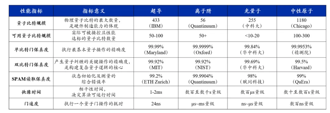 为更直观、定量地比较各技术路线的性能表现,下表汇总了其在量子比特规模、门保真度、相干时间及门速度等关键指标上的典型数据指标与当前进展: