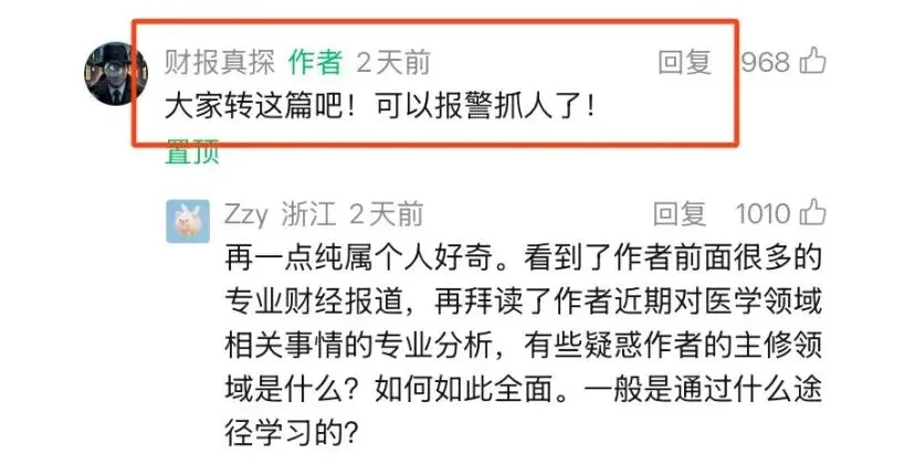 为什么说“财报真探”是神秘人呢?因为到目前为止,这个“财报真探”是男是女不知道?一个写财经的写手突然写医学了?诡异也。