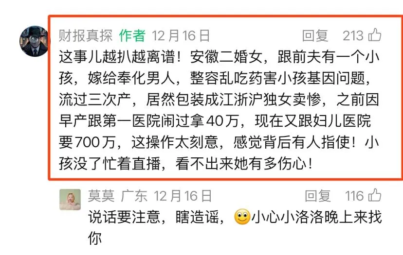 小洛熙父母理性的叩问真相,本该被社会温柔以待。现实却是,以“财报真探”为首的“神秘人”对小洛熙父母造谣传谣,曝光隐私,甚至是控评引导网暴。它的这种行为,真是世所罕见。