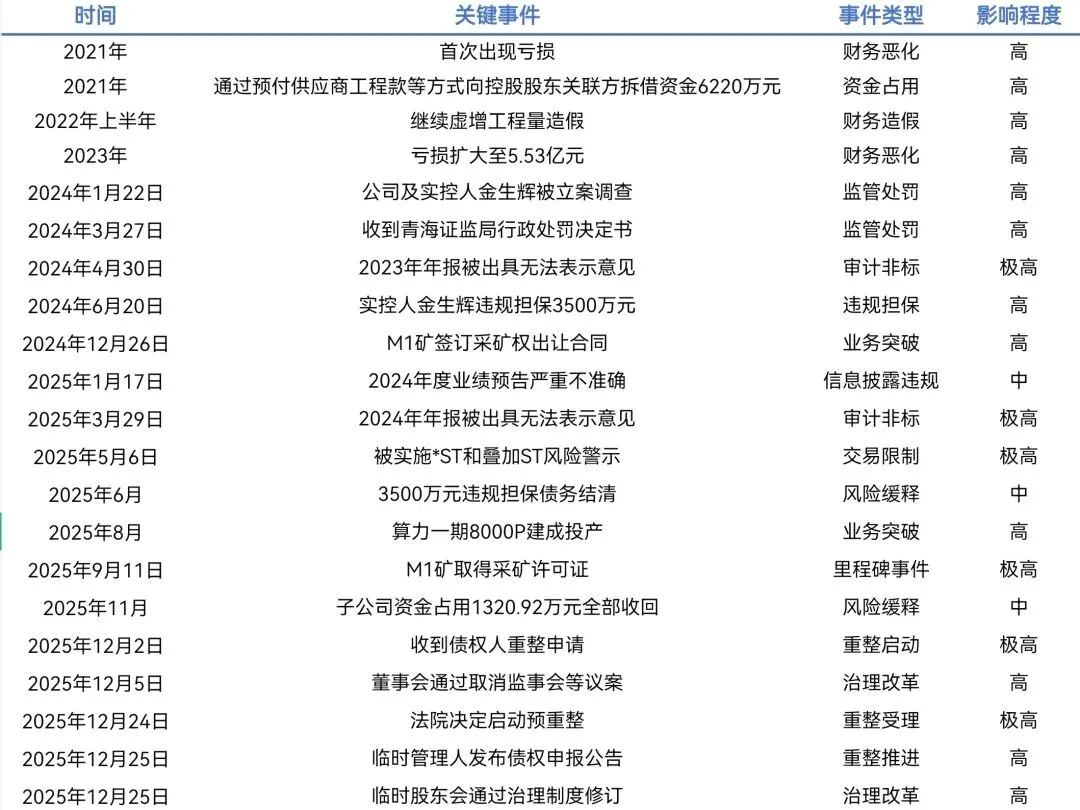 1. 危机积累的必然性:从2021年首次亏损到2025年预重整,公司经历了3年多的挣扎。期间违规担保、资金占用、业绩预告不准确等问题频发,最终导致审计非标和退市风险,危机的爆发有其必然性。