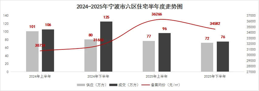 2025年,宁波楼市在政策宽松与供给侧转型双重作用下持续调整,整体成交仍处低位但低密的结构性产品存在一定机会,行业从“量的扩张”向“质的提升”加速迈进。核心特征可概括为分化&升级。