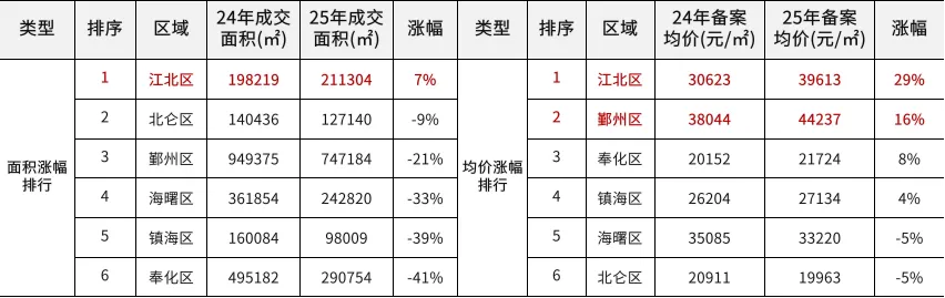 江北成交面积上涨7%/奉化成交面积下降41%