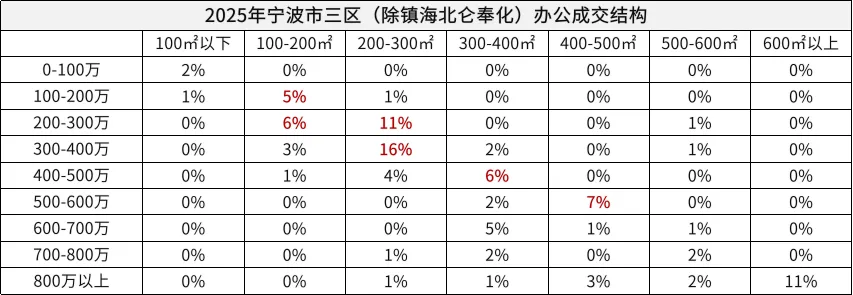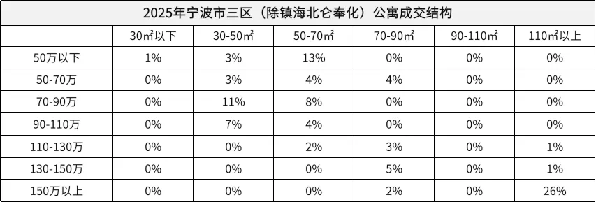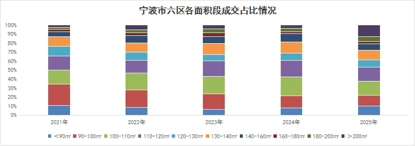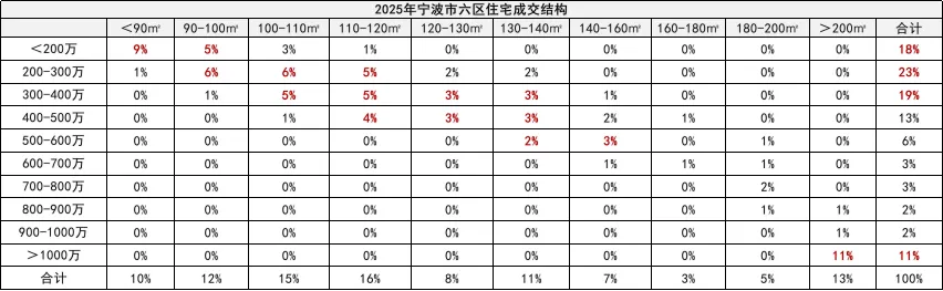②2025年成交结构:100㎡以下刚需占比22%,主力总价段集中300万以内,100-120㎡总价段集中在200-500万,200㎡以上房源总价段超千万,占比11%(同比去年上升8%)。