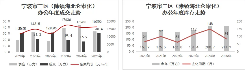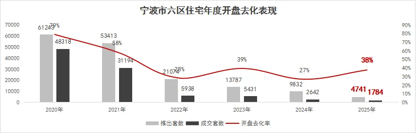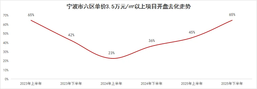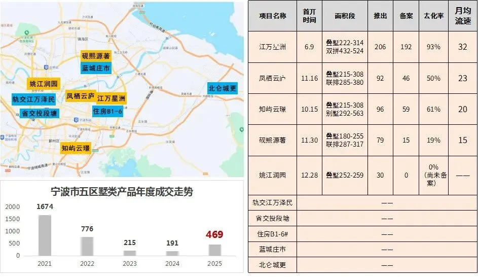 2025年宁波城区别墅解禁,核心墅类项目热销,墅类产品平均开盘去化率68%,远超整体平均去化率(38%),今年市五区墅类产品成交469套,后续城区墅类产品存量相对可控,预计明年需求仍坚挺。