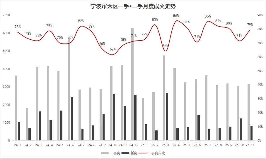 宁波二手房挂牌量突破9.8万套,供大于求矛盾突出;老旧二手房、产品落后的次新房(如缺乏电梯、户型过时)价格“节节下跌”,部分次新房出现“交付即巅峰”的价值回归现象。目前二手房价尚未筑底,预计26年价格仍有下行风险。
