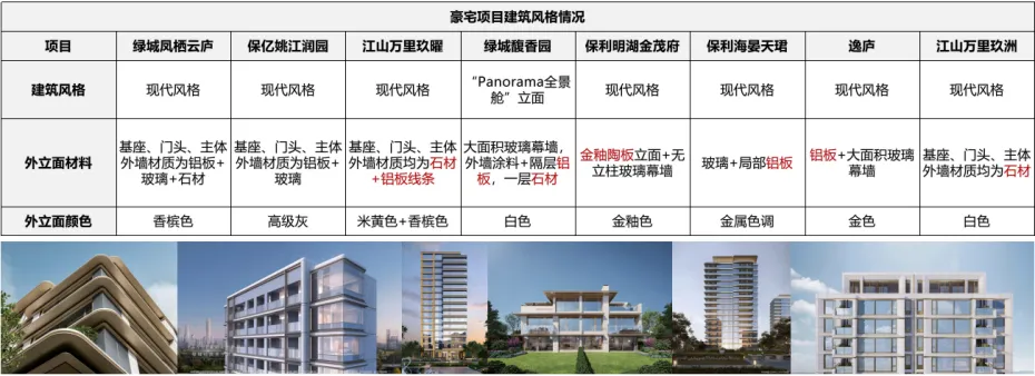 宁波豪宅当前以现代简约风格为主、金色调为特征,外立面从传统石材转向大面积玻璃幕墙搭配铝板,并跟随一线采用四面“铝板+玻璃幕墙+石材基座”体系;同时通过融入在地文化(如金釉陶板结合青瓷非遗)追求工艺突破与独特风格,正快步向顶尖产品阵营靠拢。