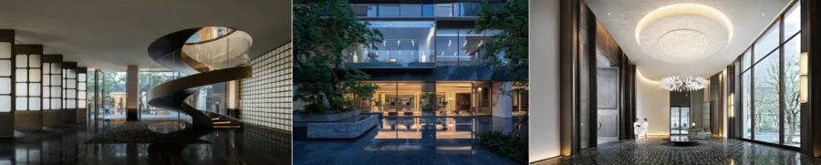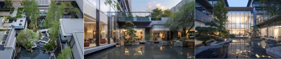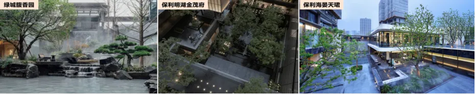 在园林景观方面,呈现隐奢、海派、古典、现代等多样化风格。在景观形式上,采用大中庭+多重组团景观形式,同时大多数项目均配备了水景,部分项目配置了地上水景+室内恒温泳池的组合。目前的项目更注重实用性和舒适性,大量采用下沉式庭院景观,增强住户与景观之间的立体互动感,塑造人与自然的美好和谐。