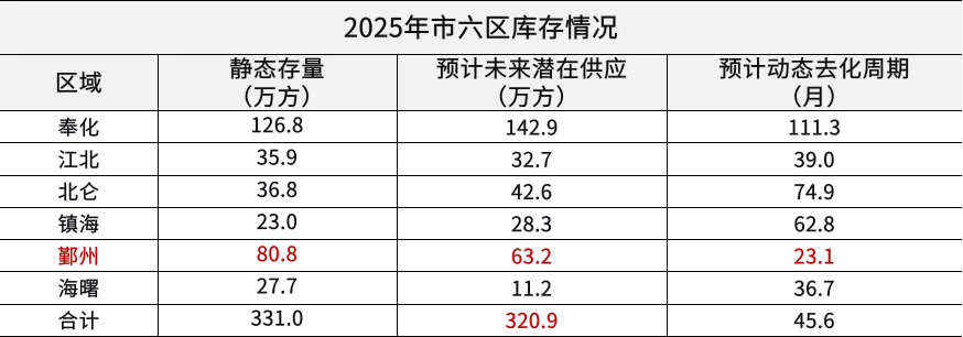奉化鄞州存量占比较大/占总存量超6成