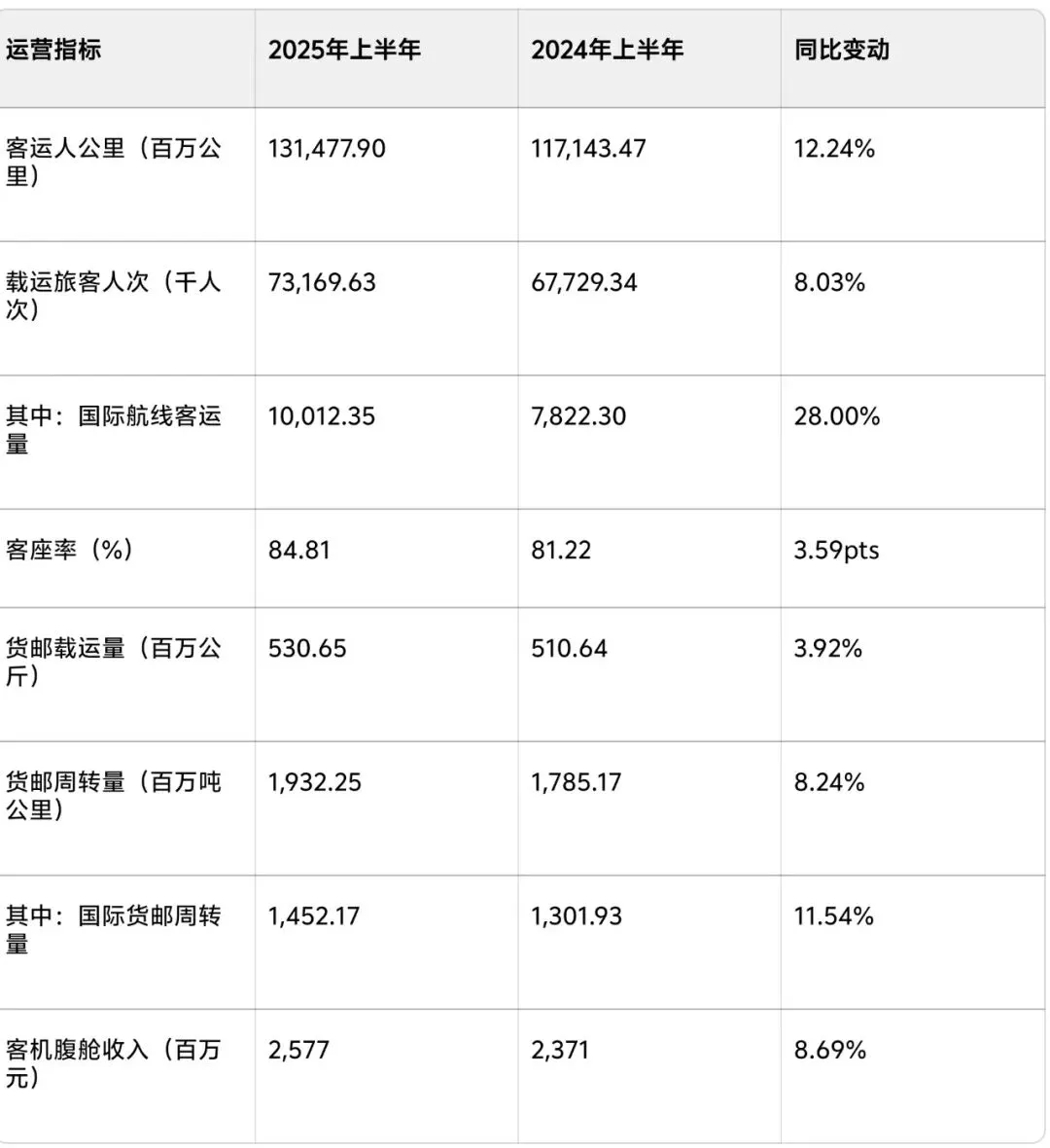 “强增长”的核心支撑,源于业务布局的“主辅协同”与“价值深耕”。作为绝对核心的客运业务,以92.5%的收入占比筑牢了业绩基本盘,其背后是民航业复苏背景下“量价齐升”的双重驱动——出行需求的持续回暖带来客运量的稳步增长,而航线结构优化、高端客群挖掘则推动票价水平回归合理区间,让核心业务不仅有“规模”更有“效益”。与此同时,货运业务的“抗周期补位”与延伸服务的“高毛利突破”,则打破了单一依赖客运的增长瓶颈:货运业务凭借稳定的航空物流需求,在客运波动周期中持续贡献盈利,成为业绩的“稳定器”;延伸服务则通过精细化运营,将退票手续费、地面增值服务等“隐性资源”转化为“显性收益”,以3.64%的收入占比实现超额盈利,成为拉动净利增长的“隐藏王牌”。这种“主业务稳规模、辅业务提效益”的格局,让增长既有“厚度”又有“弹性”。
