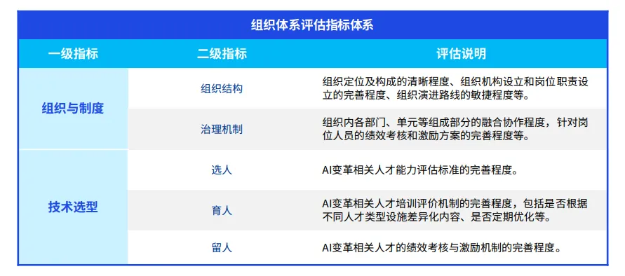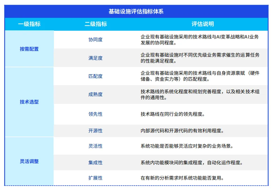面向泛行业企业的 AI Ready 变革评估体系,旨在结合企业 AI Ready 从初始状态发展到最优化的过程,基于各阶段企业的能力特点来定义就绪度等级。企业可结合此评估体系客观评价自身的 AI 发展水平,明晰在行业竞争中的相对位置,并结合等级评估结果,制定面向更高等级的能力提升计划,认准变革方向,抓住关键问题,找对发展路径。