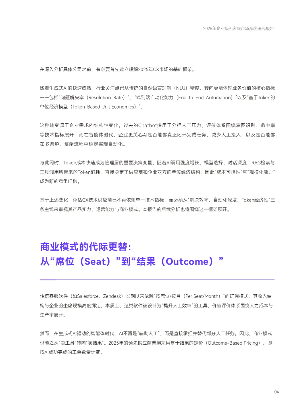 核心变革体现在三大维度:技术上,评估指标从自然语言理解精度转向问题解决率、端到端自动化能力及 Token 经济性,模型路由、多轮验证等技术成为成本控制关键;商业模式从 “按席位订阅” 转向 “按结果付费”,企业仅为 AI 闭环完成的任务付费,交付风险从企业转移至供应商;估值逻辑分化,新兴智能体企业 P/S 倍数达 50-100 倍,成熟厂商则回归传统 SaaS 估值水平。
