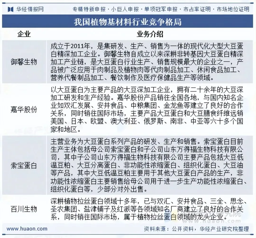 华经产业研究院对中国植物基材料行业发展现状、市场供需情况等进行了详细分析,对行业上下游产业链、企业竞争格局等进行了深入剖析,最大限度地降低企业投资风险与经营成本,提高企业竞争力;并运用多种数据分析技术,对行业发展趋势进行预测,以便企业能及时抢占市场先机;更多详细内容,请关注华经产业研究院出版的《2025-2031年中国植物基材料行业发展前景预测及投资方向研究报告》