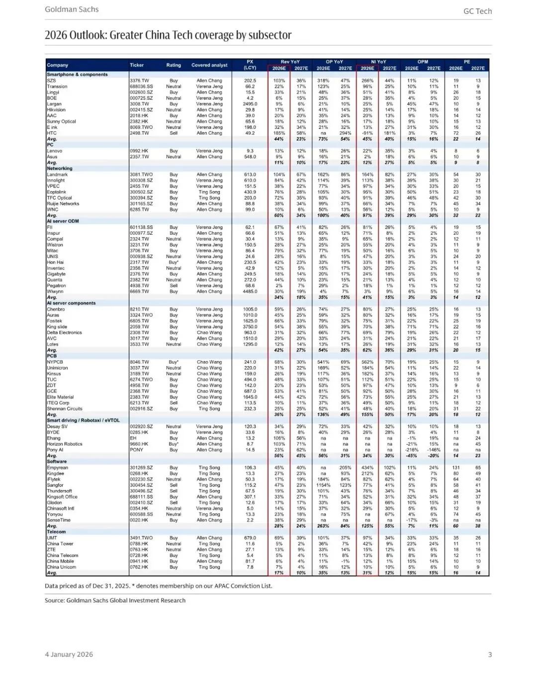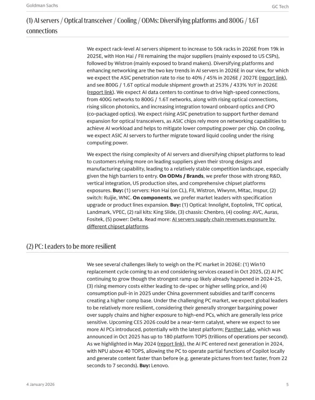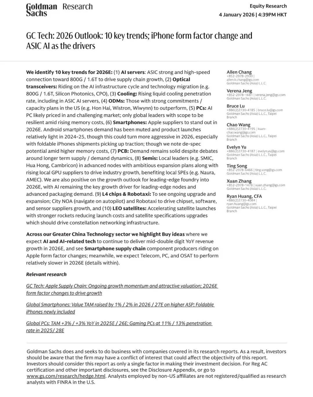 报告名称:大中华区科技行业2026年展望:十大关键趋势(文末附全文PDF) 出 品 方:高盛