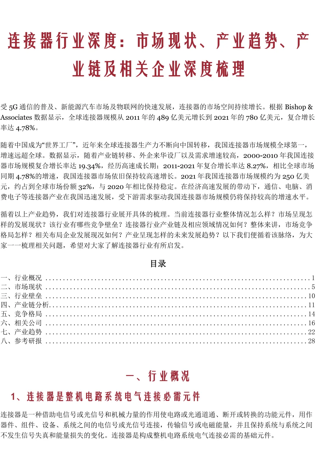 《连接器行业深度:市场现状、产业趋势、产业链及相关企业深度梳理》(免费下载)