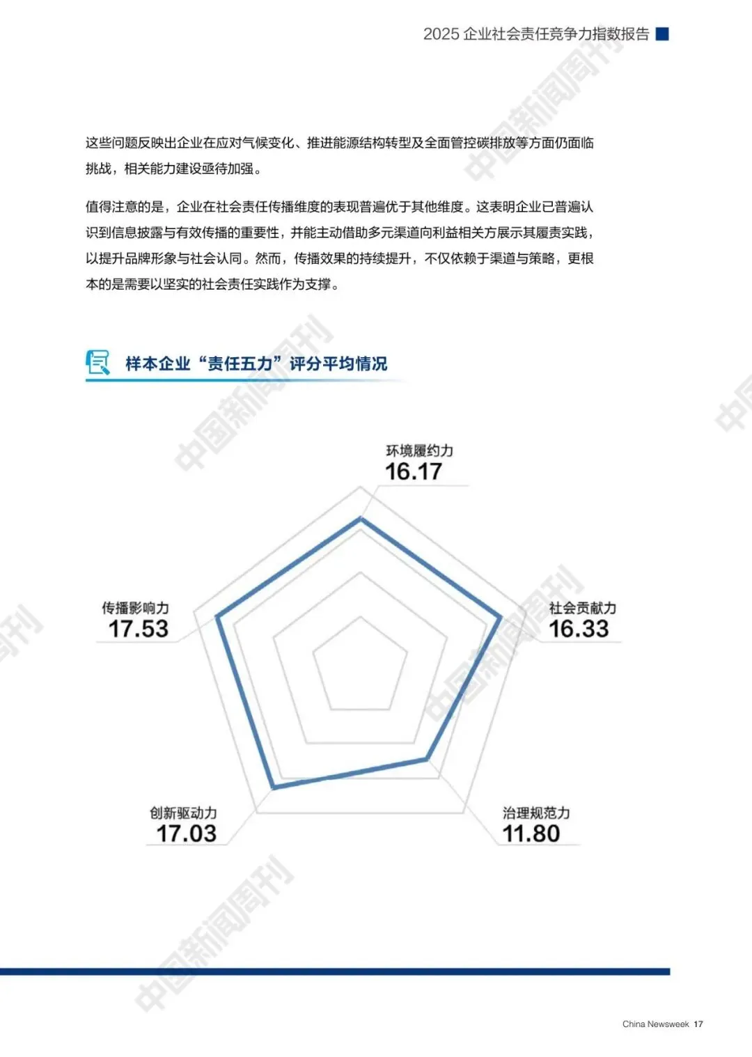 《2025企业社会责任竞争力指数报告》基于“责任五力模型”,系统呈现2025年企业社会责任发展全貌与实践成效。