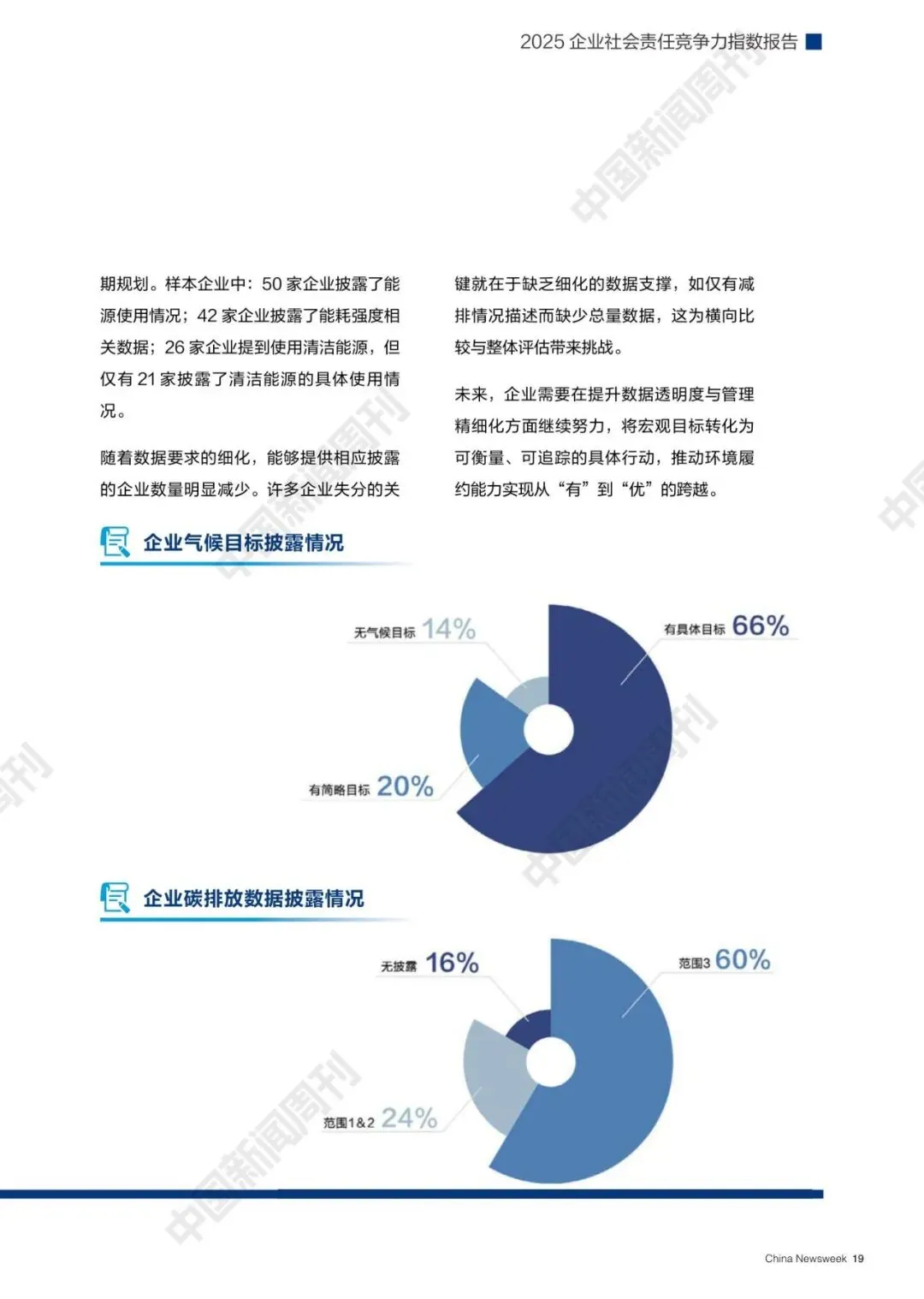 环境维度,超八成企业设定气候目标并披露碳排放数据,绿色生产与低碳技术应用成效显著;