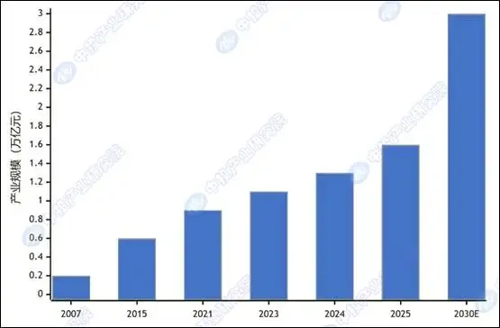 1、产业规模:2030年达3万亿元,占工业增加值比重超11%(2023年仅2.4%);