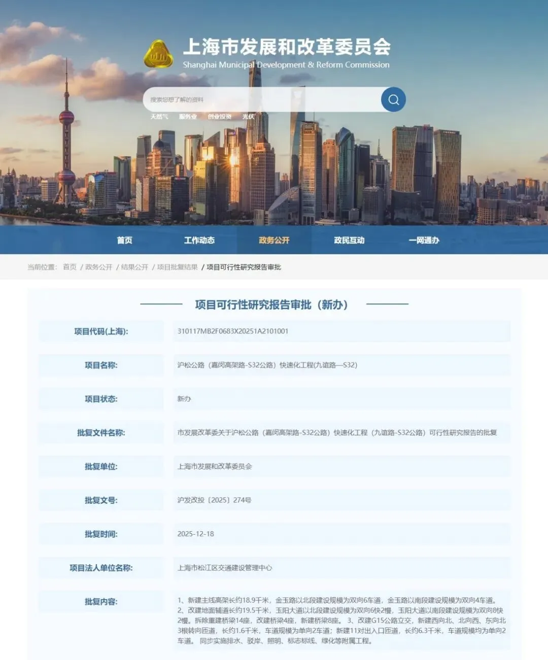 2024年5月31日 北段(嘉闵立交-九谊路)可行性报告获得市发改委批复