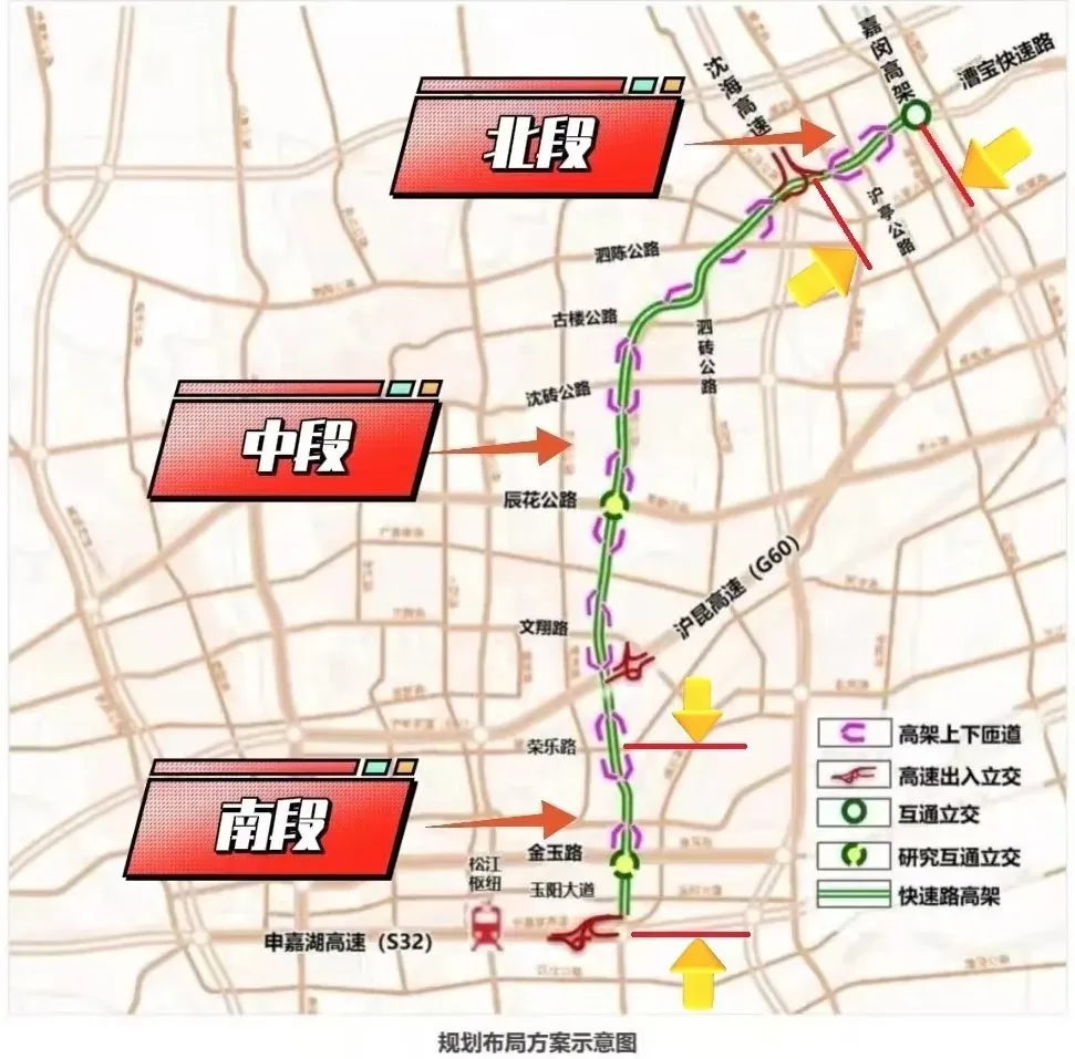 沪松公路快速化项目将在现有沪松公路和松卫公路上,全线叠加一条高架道路作为主线道路,以实现快速化。