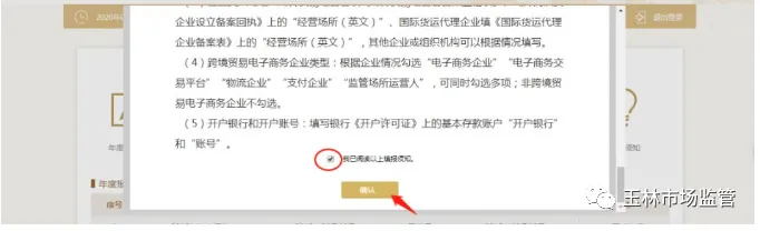 弹出年报须知,阅读后,在下方“已阅”前的小框内“∨”(对勾),再点确认。如果以前存在没有参加年报的年度,先需要将以前年度补报后才可申报本年度的。