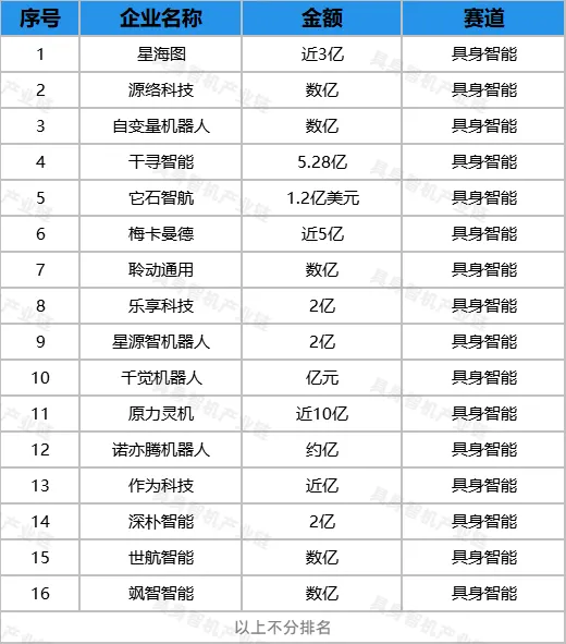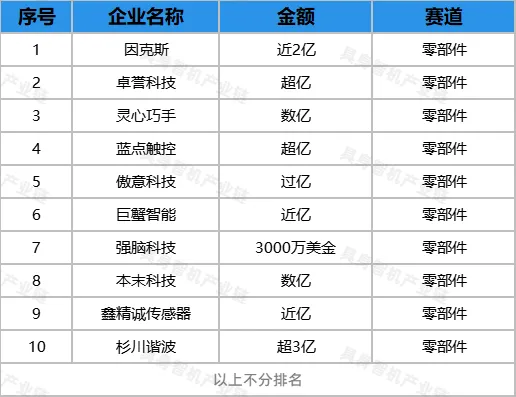 从融资领域方面来看:人形机器人与具身智能共有58起;零部件共14起,且主要集中在谐波减速器、灵巧手、伺服电机等核心部件上。