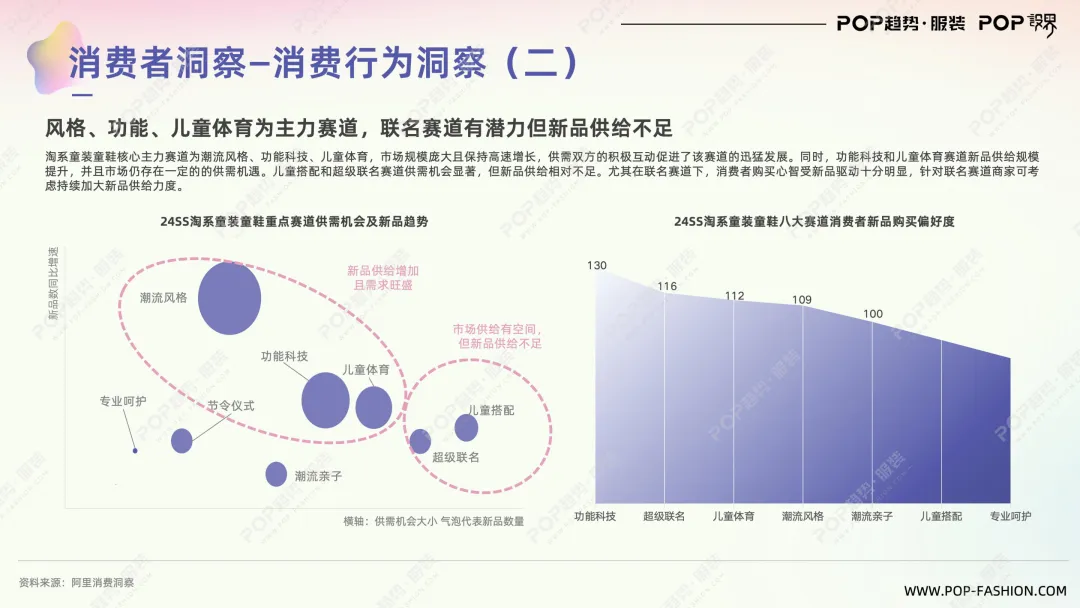:专业感更强的运动套装,对标成人健身服; 而超级联名(如IP合作)虽然需求旺,但供给少,是蓝海机会。