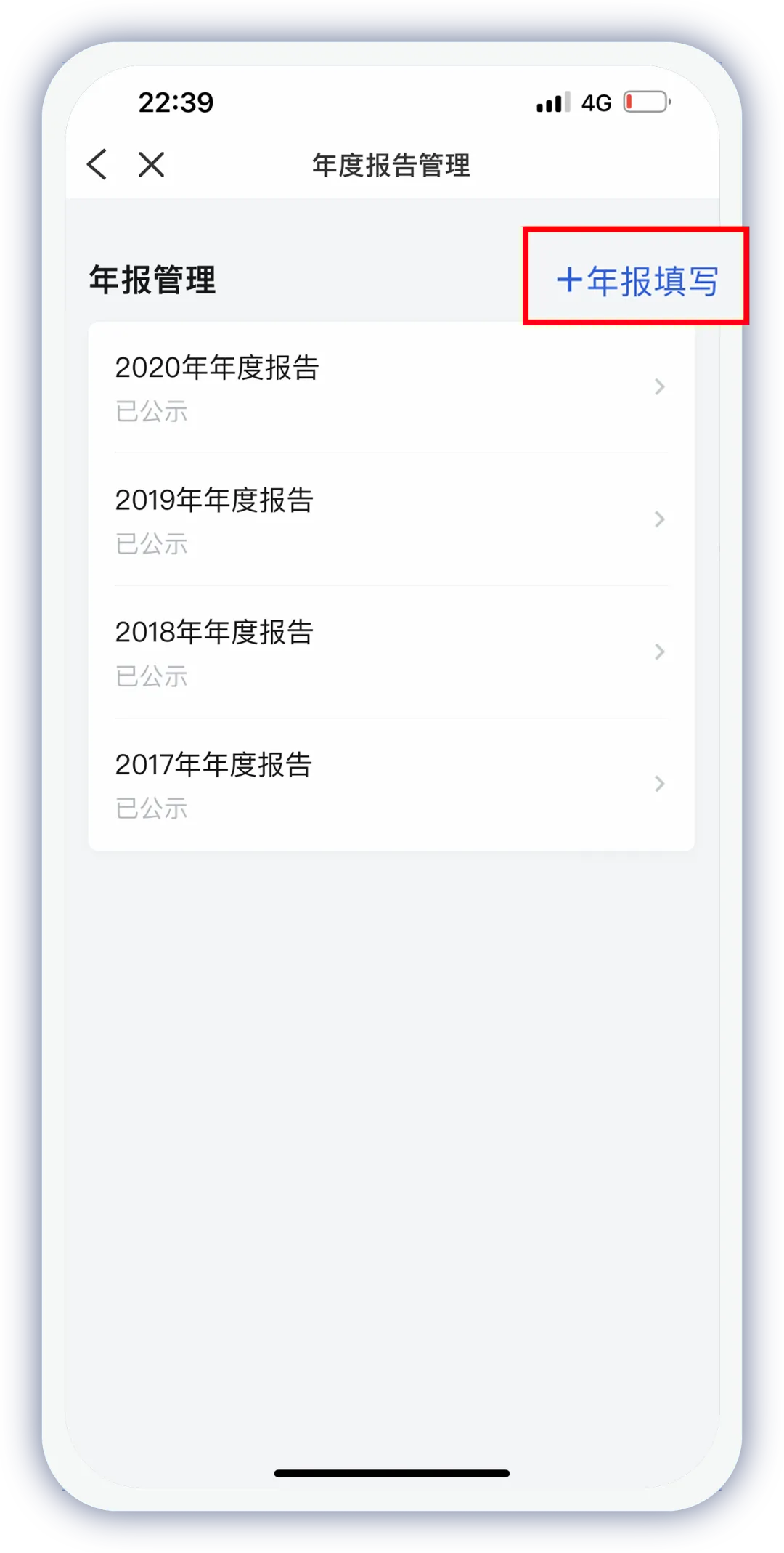 选择列表内任一市场主体,点击【年报填写】,即可为其报送年报。
