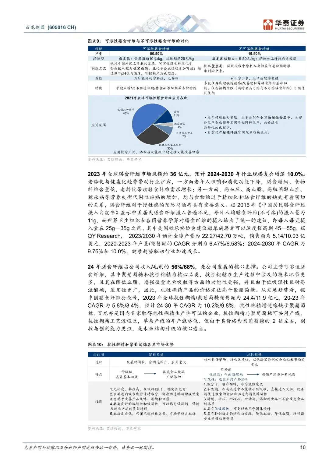 2)膳食纤维:作为"第七大营养素",当前我国膳食纤维摄入缺失达50%,老龄化与健康化趋势带动行业扩容,抗性糊精凭借更强功能性(降血脂、增强微量元素吸收、耐酸碱高温)增速更快、拉动结构升级,24-30年全球抗性糊精销售额CAGR为10.2%(膳食纤维垫纤维垫体为10.0%)。
