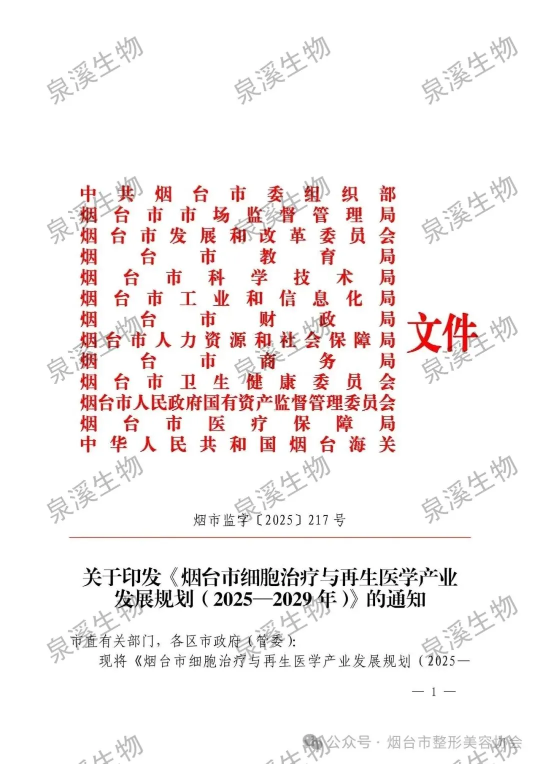 1.烟台市出台《烟台市细胞治疗与再生医学产业发展规划(2025—2029年)》;