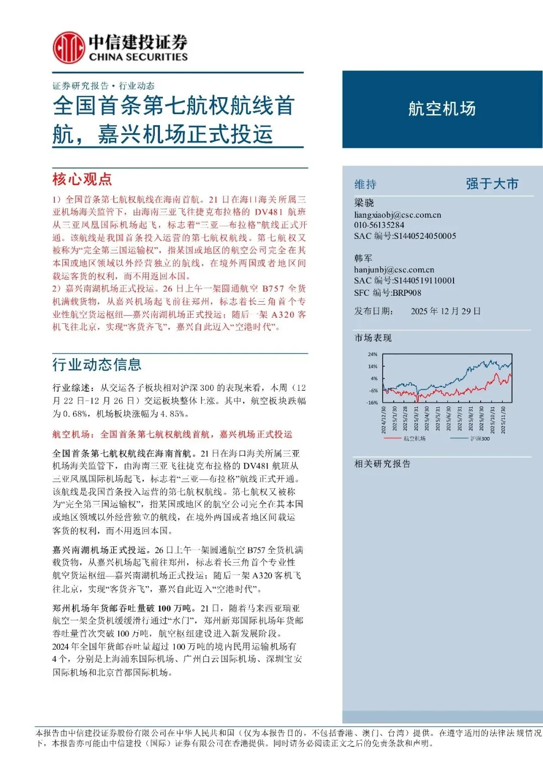航空机场行业:全国首条第七航权航线首航,嘉兴机场正式投运-251229-中信建投-20页