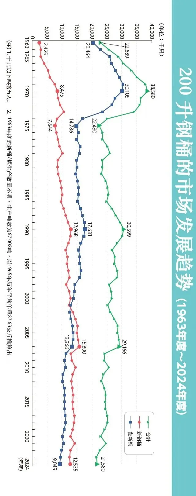 我们从下面曲线图纵观日本钢桶从上世纪60年代到现在的发展历程。