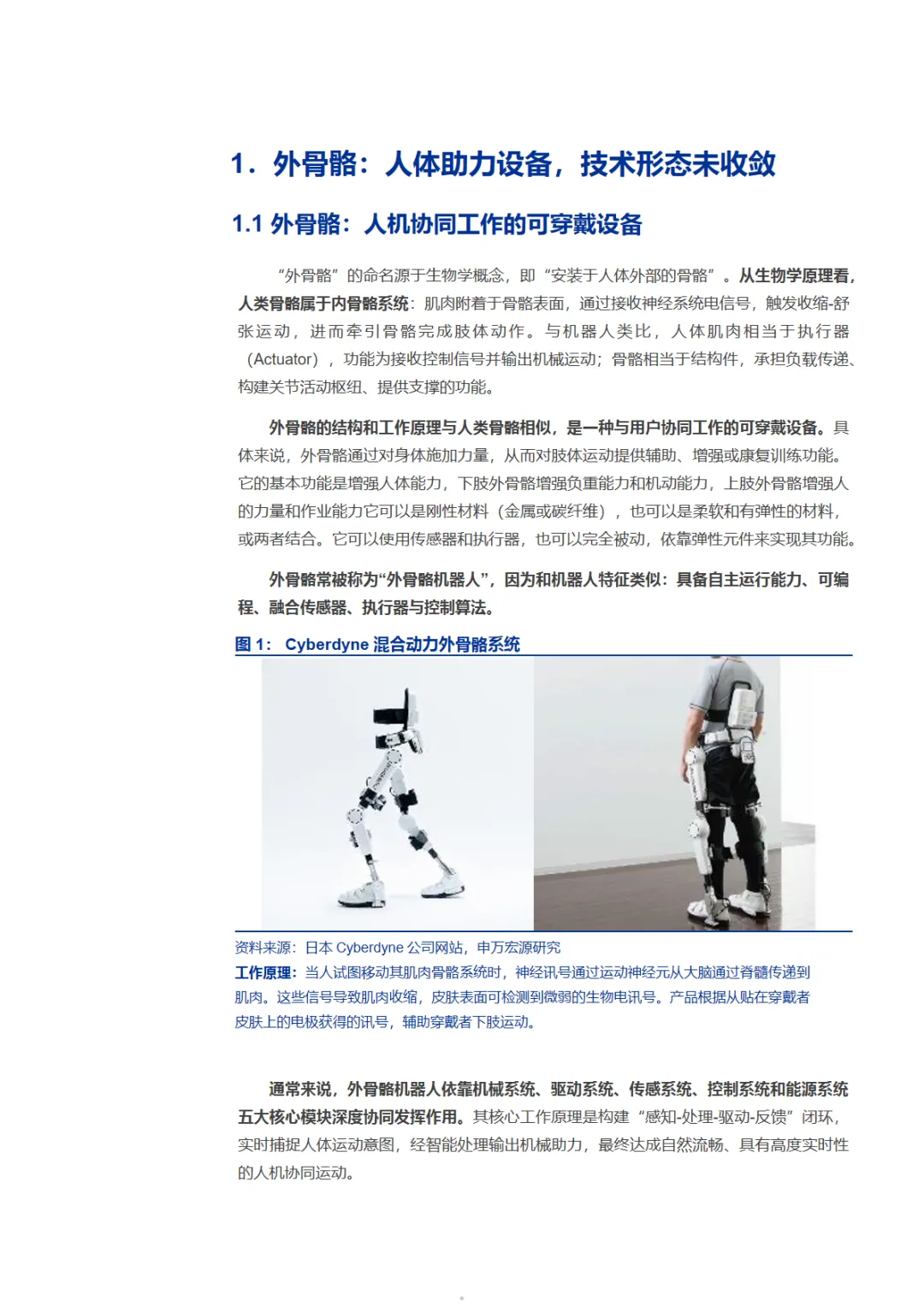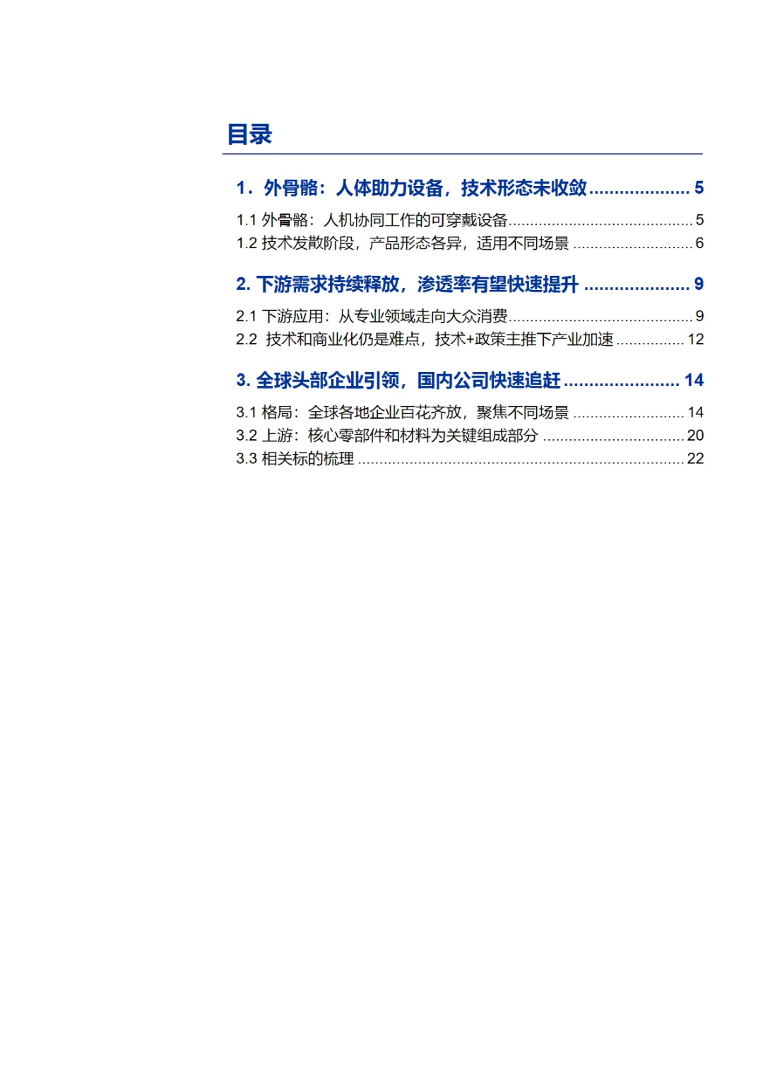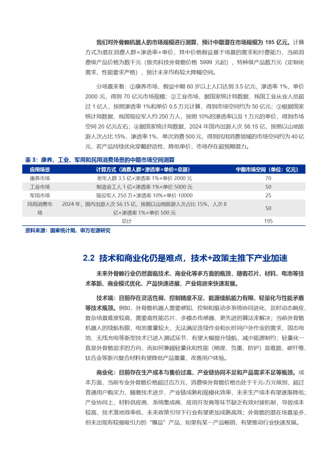 本篇行业报告可以通过扫下方知识星球下载。39元就可以下载星球所有报告。免费提供报告查找服务。外骨骼机器人正从实验室走向大众生活。作为穿戴于人体外部的智能助力设备,它通过传感器捕捉肌电信号、关节角度等生物信息,经控制系统实时处理,驱动机械结构协同人体运动,实现力量增强、负重支撑与康复训练等功能。当前行业仍处于技术发散阶段,产品形态按穿戴部位、驱动方式、应用场景等维度高度分化,尚未形成统一标准。市场需求呈现从专业领域向消费级市场延伸的清晰趋势。医疗康养是最大应用场景,面对我国超3亿老年人口和2800万脑卒中患者的庞大基数,外骨骼在康复训练与生活辅助领域前景广阔。工业领域聚焦物流、汽车制造等重体力场景,致力于降低工伤风险、提升作业效率。军用场景契合单兵装备轻量化与战斗力增强需求。民用消费领域则开辟登山徒步、日常出行等新蓝海,泰山景区试点租赁模式已获游客热捧。据测算,中期潜在市场规模达195亿元。其中康养市场70亿元、工业市场50亿元、军用市场25亿元、民用消费市场50亿元构成核心增量。然而行业仍面临技术瓶颈与商业化挑战:系统响应延迟、续航仅2-4小时、轻量化与性能矛盾等问题待解;专业设备售价超百万元,消费级产品也需数千元,成本制约规模化普及。政策与资本双轮驱动产业加速突破。2025年IEC发布的养老机器人国际标准由我国牵头制定,《"机器人"应用行动实施方案》等政策明确支持外骨骼在养老服务场景验证。近三年极壳科技、傲鲨智能、傅利叶智能等企业获数亿元融资,推动技术迭代与场景落地。竞争格局呈全球百花齐放之势。海外龙头Ekso Bionics、Cyberdyne、ReWalk Robotics深耕医疗康复与工业领域,技术积累深厚。本土企业快速崛起:傅利叶智能以医疗康复机器人为核心,服务全球60余国;傲鲨智能覆盖工业与消费双场景,产品亮相《流浪地球2》;肯綮科技聚焦登山助力,在泰山景区实现商业化验证;极壳科技将消费级产品降至千元价位,年出货数万台。随着芯片、固态电池、碳纤维材料等核心技术突破,叠加产业链协同优化,外骨骼机器人正从"能用"迈向"好用"。未来谁能在人机协同精准性、结构设计灵活性与场景适配能力上建立护城河,谁就能在这场人与机器深度融合的产业革命中抢占先机。免责声明:以上分享报告为公开合法渠道获得,内容大部分来源于网络,版权归原作者所有,如有侵权,请及时与我们联系,我们将第一时间保障您的权益。推荐内容仅供参考学习,不构成投资建议。