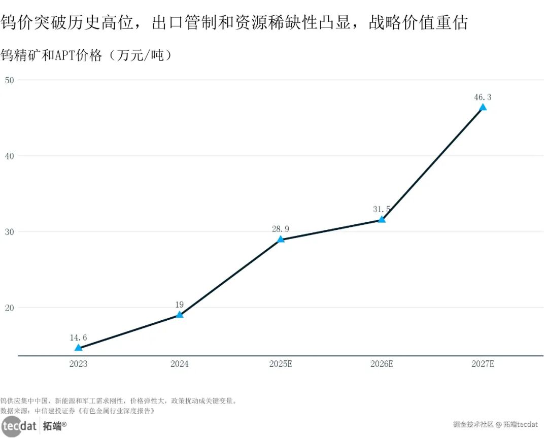 4. 钨:出口管制+军工需求,价格半年翻倍