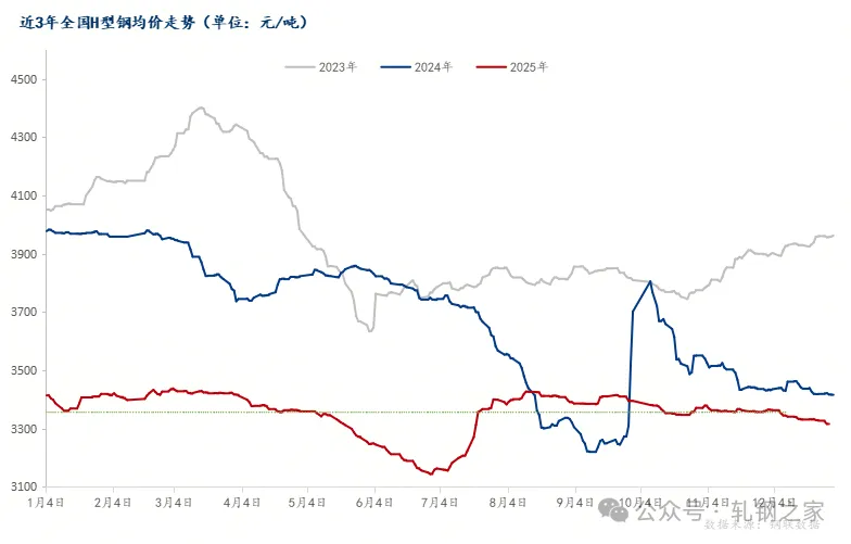 图:2023-2025年型钢成交对比走势图 数据来源:我的钢铁