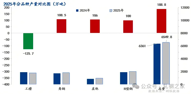 图:2025年分品种全国热轧型钢产量示意图 数据来源:钢联数据