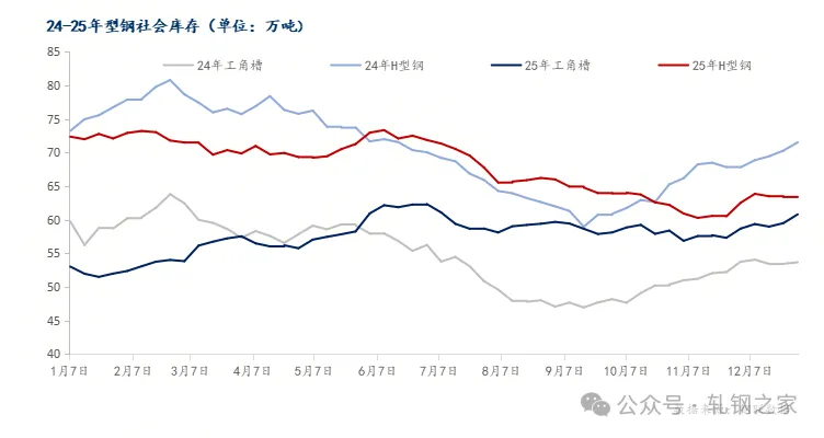 图:2024-2025年全国型钢社会库存走势图 数据来源:钢联数据