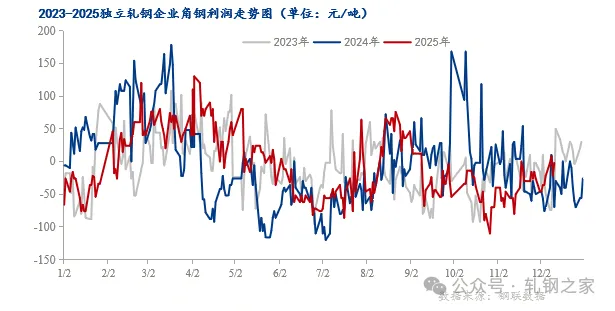 图:2023-2025年独立轧钢理论测算利润走势图 数据来源:钢联数据