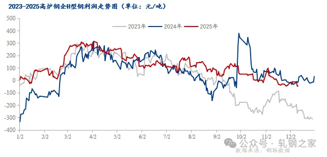 图:2023-2025年高炉理论测算利润走势图 数据来源:钢联数据